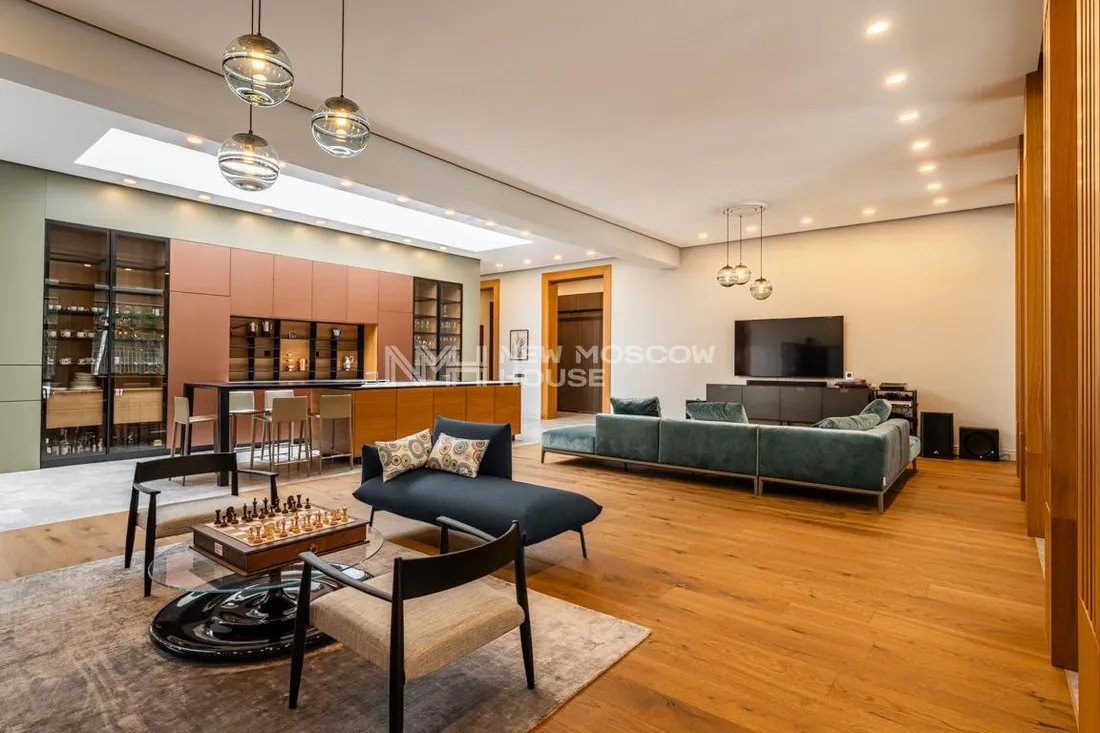 Одноэтажный дом с отделкой 387,5 кв. м + гостевой дом 136,7 кв. м на участке 26 соток в коттеджном поселке «Графские Пруды». Москва, Киевское шоссе, 27 км от МКАД, Новомосковский административный окру...