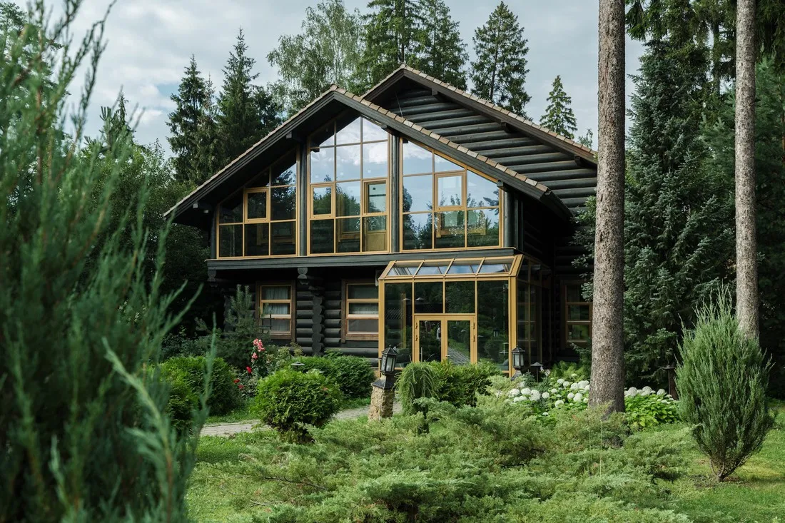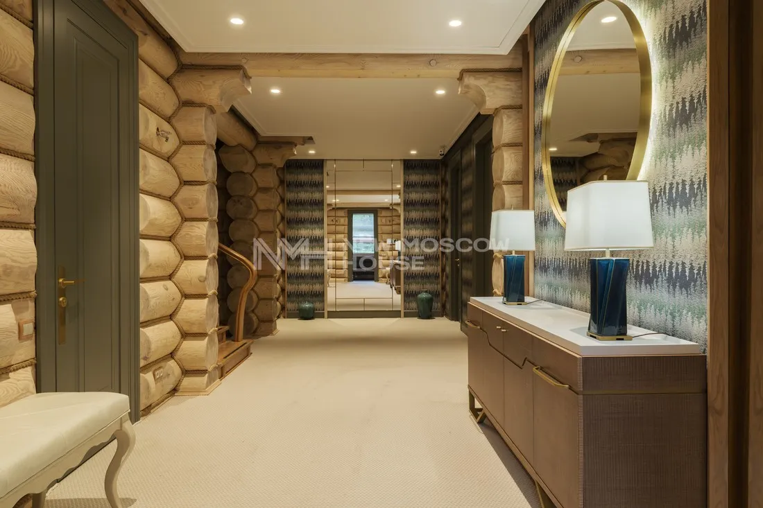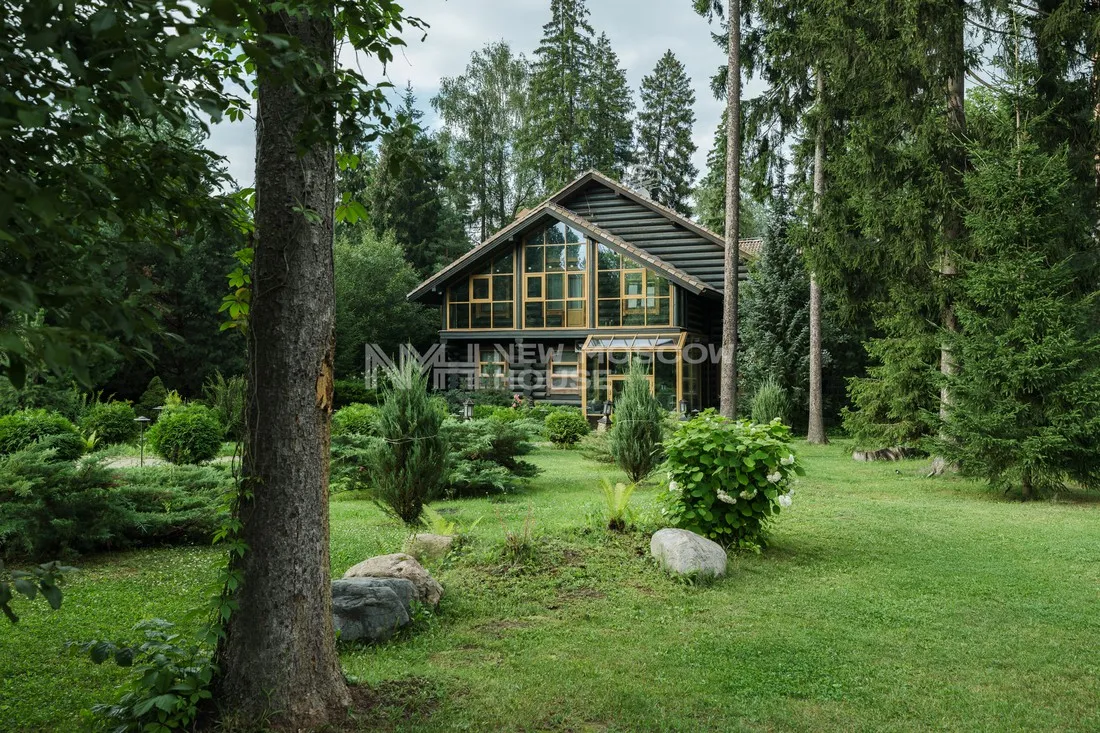 Дом 393 кв.м из оцилиндрованного бревна на участке 54 сотки в коттеджном поселке Ландшафт. Поселок расположен в 11 км от МКАД по Рублево-Успенскому шоссе, в деревне Жуковка, Одинцовский городской окр...