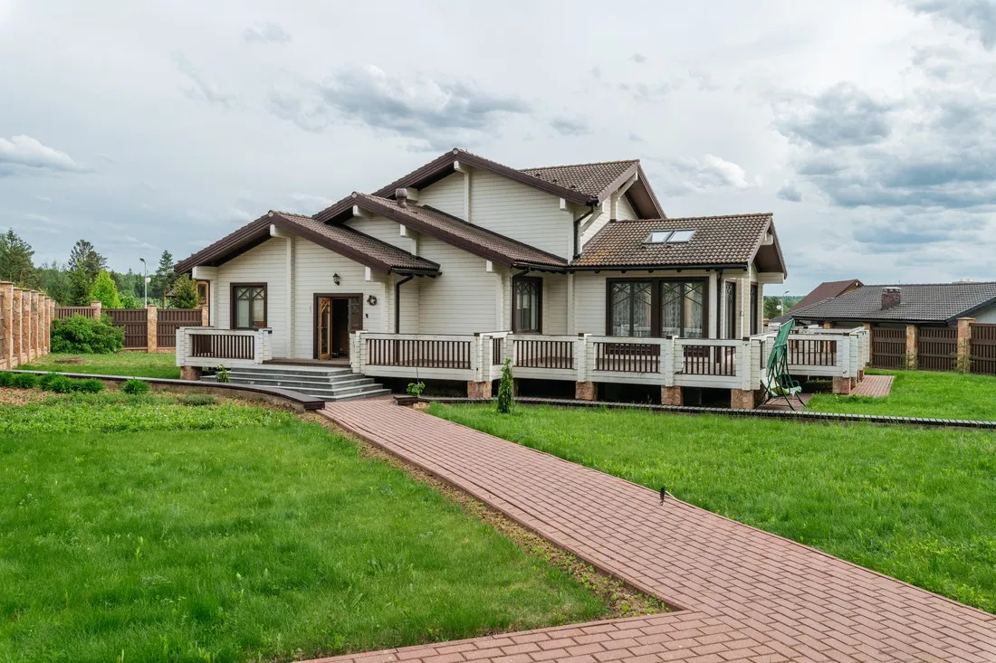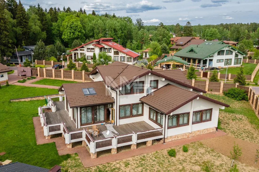 № 2547 Дом из клееного бруса 320 кв. м с дизайнерским ремонтом и мебелью и дом 300 кв. м для отдыха с бассейном и спа-зоной на прилесном участке 25 сотoк в поселке бизнес-класса «Сосновый Бор». Посел...