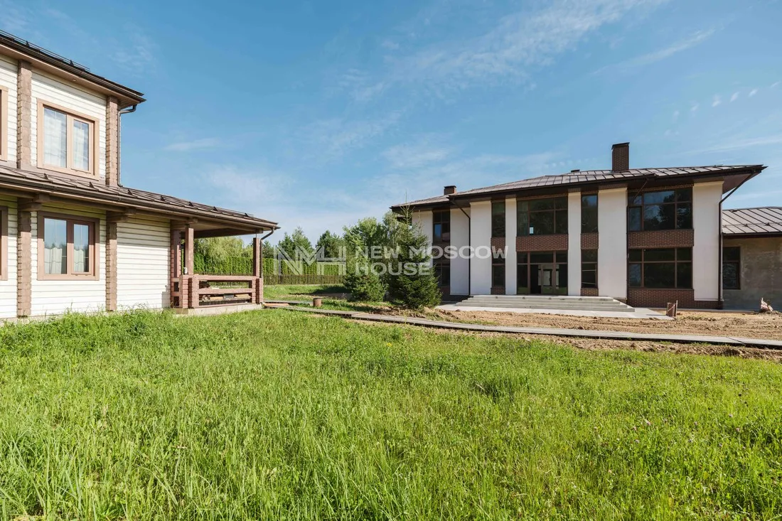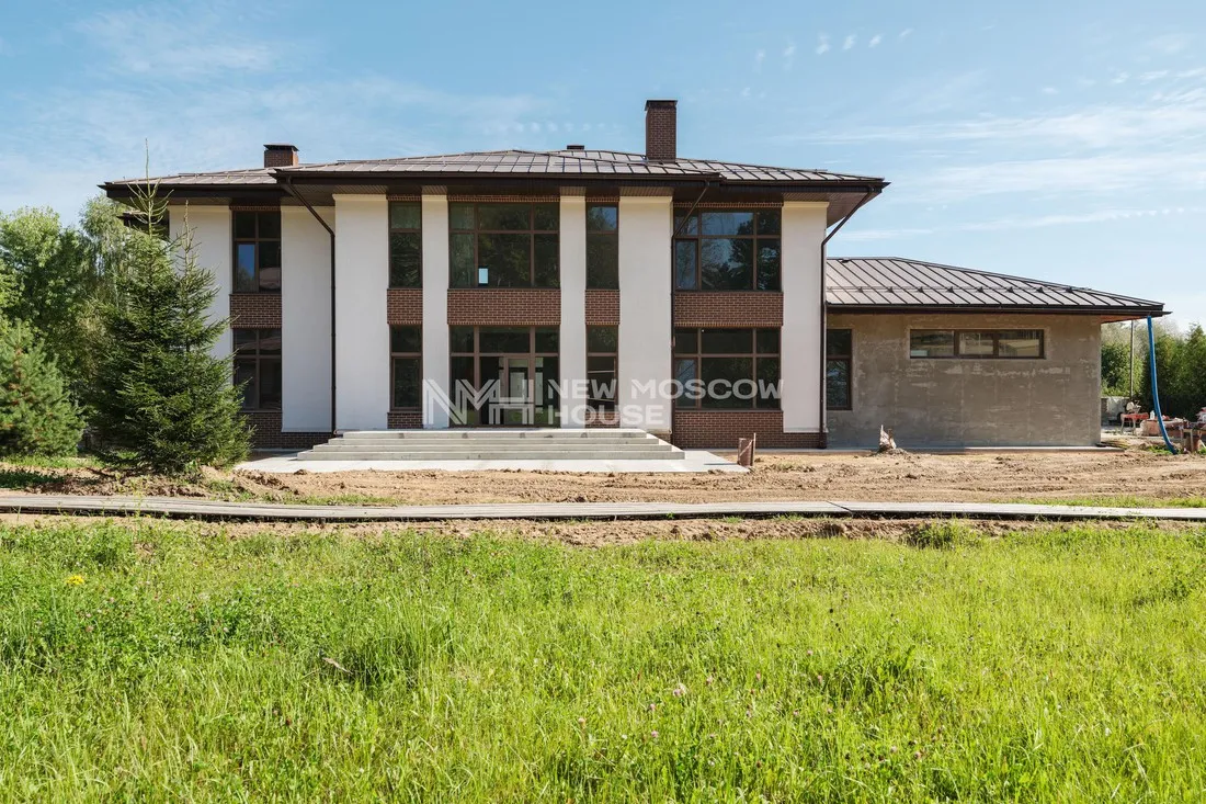 Дом 448,2 кв. м с отделкой white box + банный комплекс 143 кв. м на прилесном участке 45 соток в коттеджном поселке «Графские пруды». Поселок расположен 27 км от МКАД по Киевскому шоссе. Москва, Новом...