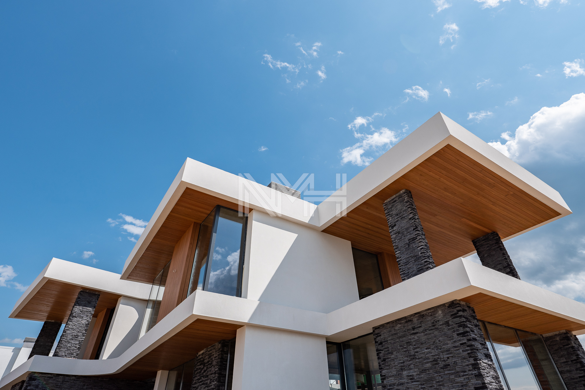 Важно, что архитектура здесь не стилизована под «классику» или «шале» — это современный язык, ближе к европейским и американским загородным виллам.