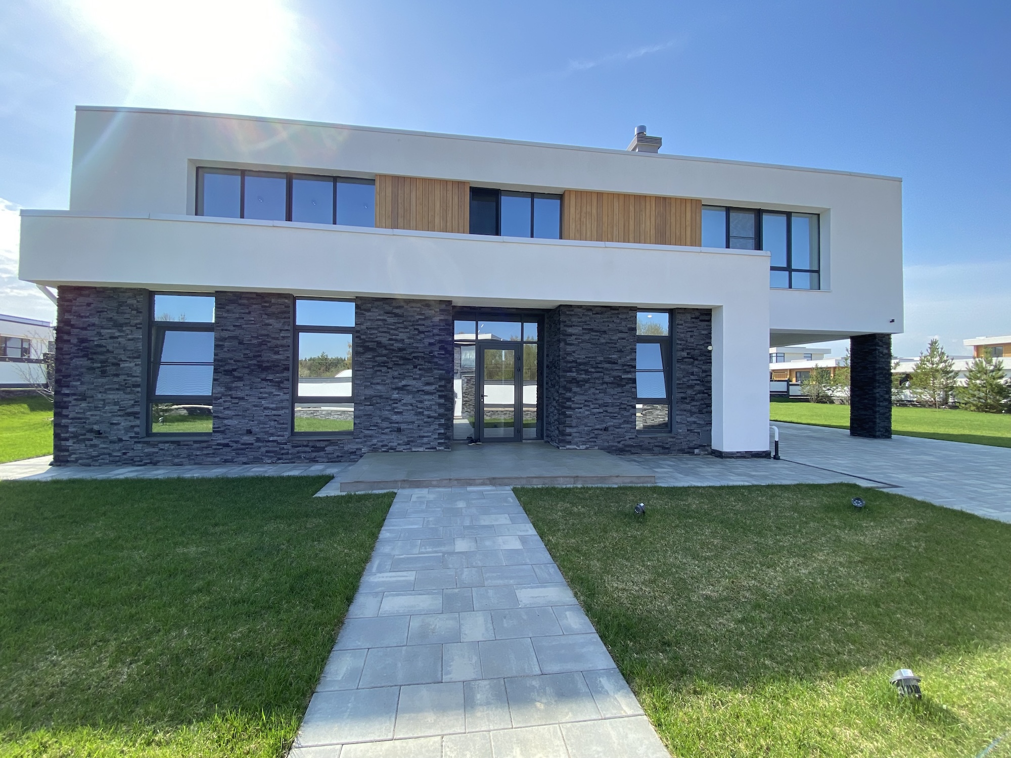 Это уже не просто коттедж, а полноценная частная резиденция в современной архитектурной логике.