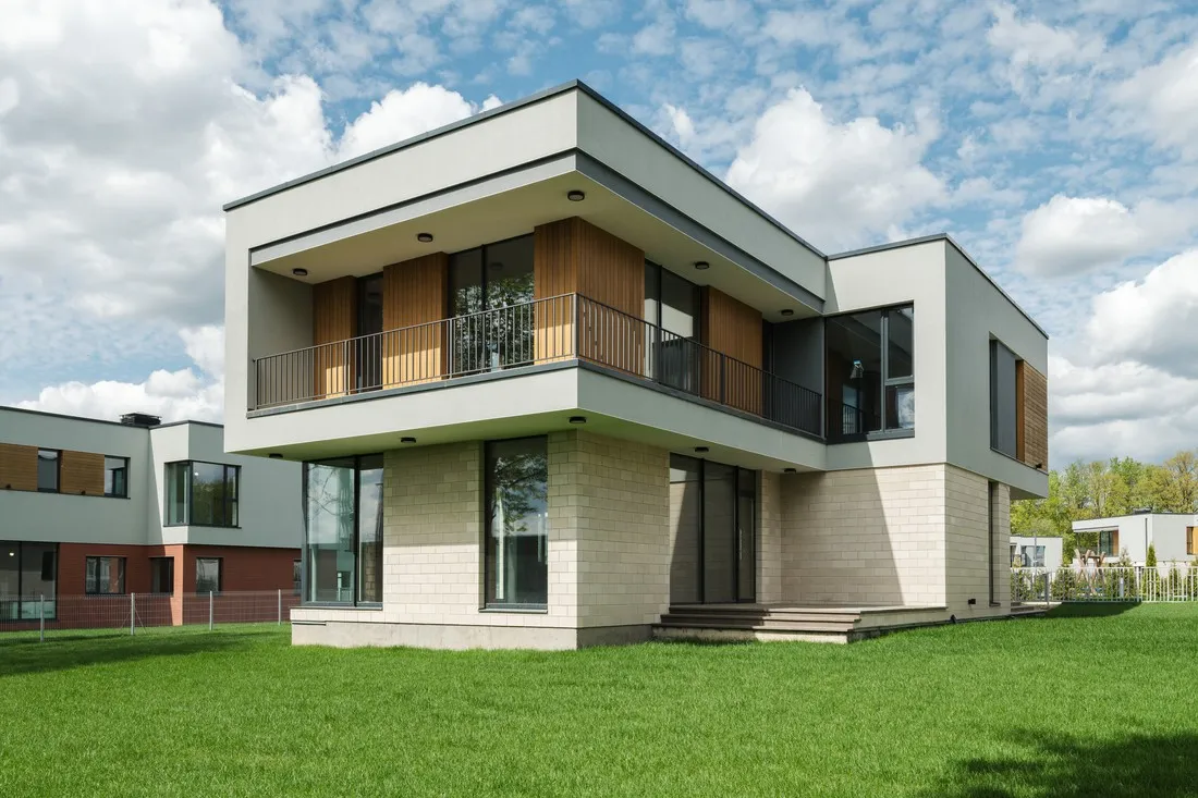 № 2184 Коттедж в современном стиле 320 кв. м без отделки на участке 12 сот. в камерном поселке «Зайцево Парк», в 19 км от МКАД по Минскому шоссе. Московская область, Одинцовский городской округ, дер...