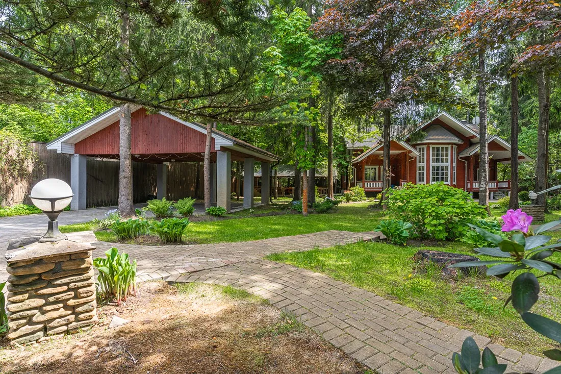№ 2194 Дом с отделкой под ключ, 470 кв. м, на участке 44 сотки, в КП «Серебряный век», в 30 км от МКАД по Киевскому шоссе. Усадьба из клееного бруса (Ангарская сосна) с двухсветной гостиной с панора...